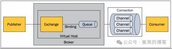 RabbitMQ 使用 AMQP,概念体系包括: