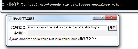 serialver 类的全名即可打印类的序列值或提示类没有被序列化