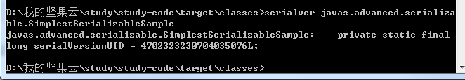 查看序列值的方式是使用serialver,该文件和javac/java并列在$JAVA_HOME/bin下。使用方式有两种: